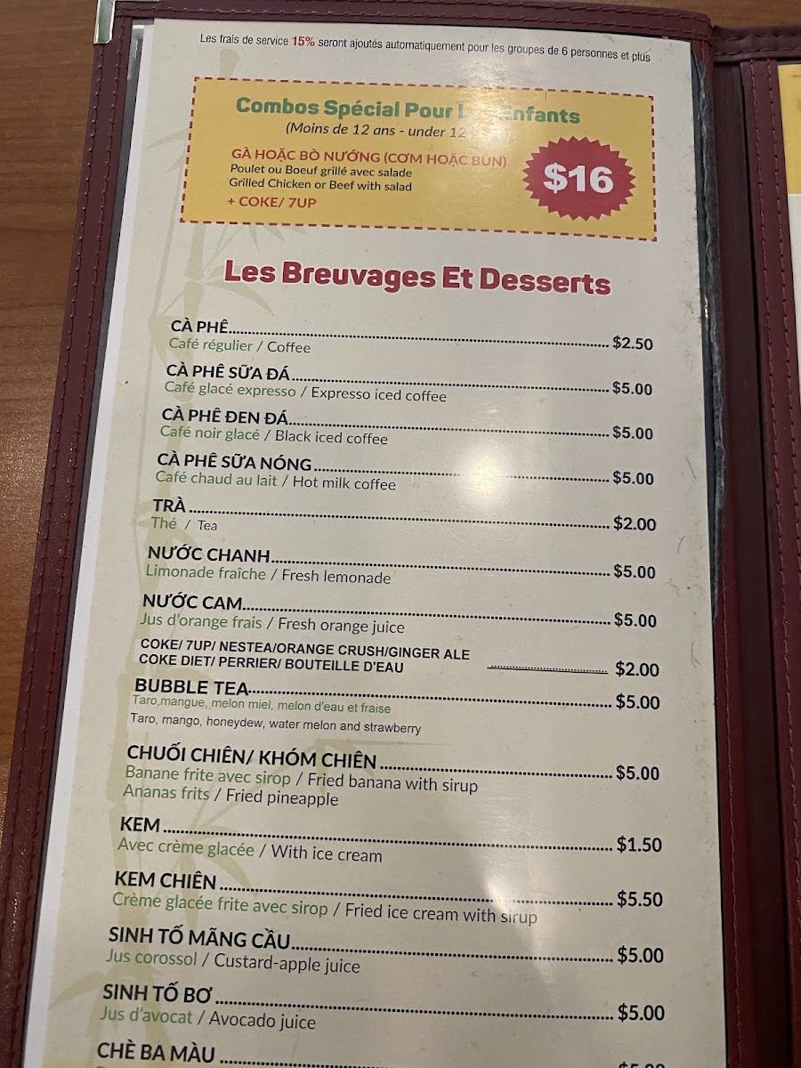 - For dessert, indulge in fried bananas in syrup or the colorful Che Ba Mau (CA$5).